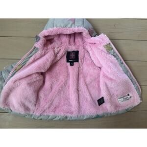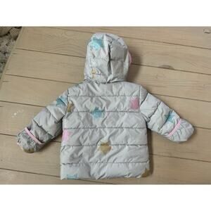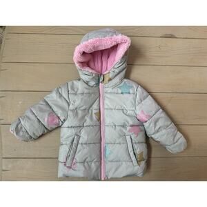 Girl Toddler 18 Month Gray Pink Hood Puffer Winter Coat Glitter Stars Zip Up