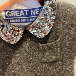 Beautiful girls size six runs small more ideal for a 4 year old wool dress with beautiful jeweled collar short sleeved perfect condition no stains no holes or rips gently worn once !