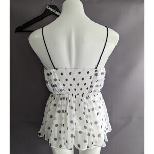 Girl from Saroy Polkadot Chiffon Blouse Cami Top White & Navy Sz 2