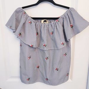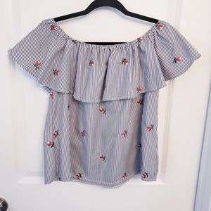 Girl Evolution Women's Blue and White Stripe Top with Roses Size Medium