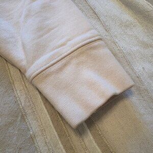 Girlfriend Collective, 50/50 crewneck, sweatshirt, cropped sweatshirt, sustainable fashion, eco-friendly, organic cotton, recycled cotton, canyon color, beige, cream, tan, peach, size S, soft sweatshirt, casual wear, cozy, plush, ribbed trim