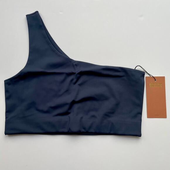 Girlfriend Collective Bianca Sports Bra One Shoulder Skyline Blue Size XL NEW