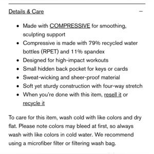 Compressive is made with 79% recycled water bottles (RPET) and 11% spandex