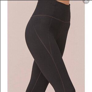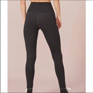 Recycled stretch jersey leggings in black. High-rise. Tonal overlock stitching throughout.