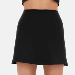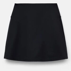 A sporty high rise exercise skirt with built-in compressive shorts, hidden mesh pockets, and side slits for easy moving.