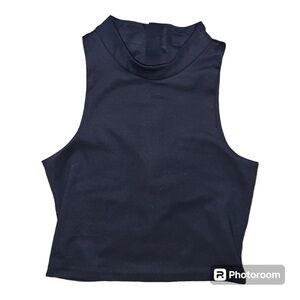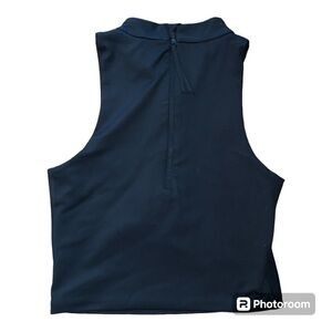 Girlfriend Collective Freddie crop top small black back zip high neck gym yoga