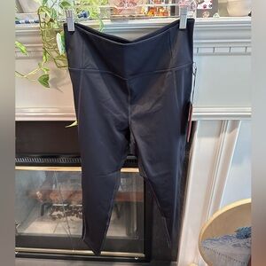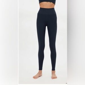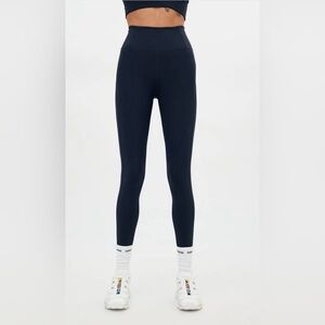 High-waisted navy leggings. Sleek and comfortable design. Perfect for workouts or casual wear.