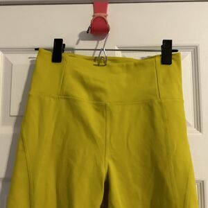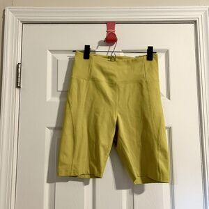 Vibrant lime bike shorts. High-waisted design. Perfect for active wear.
