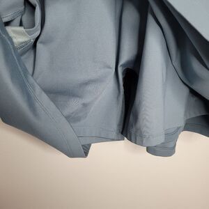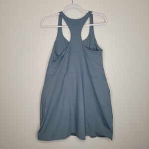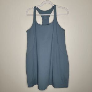 Girlfriend collective dress: green gray blue, muted, shorts attached, stretch, tennis, athletic, sporty