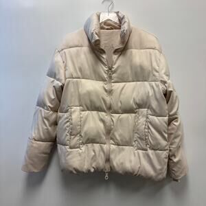 Girlfriend Collective Recycled-Shell Puffer Jacket Beige Cream Sz Small S