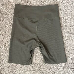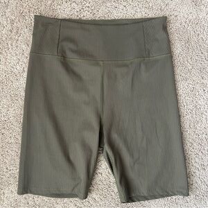 These are in great used condition - they still feel pretty new and are not stretched out or worn thin. Cute olive color with longer inseam for bike shorts. Ribbed features that are currently not on sale. Sized L. Make me an offer!
