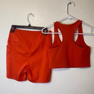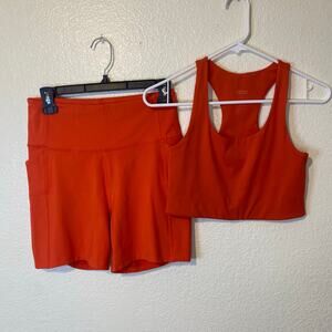 Girlfriend Collective Tangerine Orange/Red Matching Set Sports Bra Shorts S/M