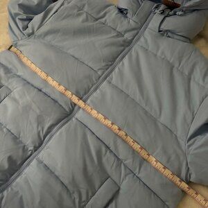 Girlfriend Collective puffer long jacket sz XXXL lightblue hooded zip pockets