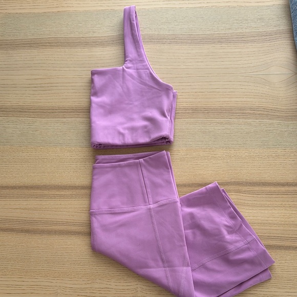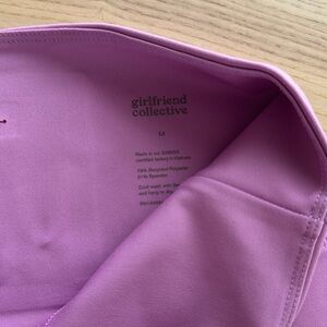 Girlfriend Collective set in an orchid pink/purple color