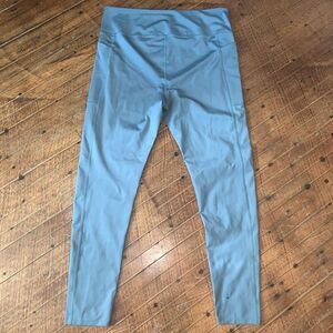 Girlfriend Collective smoky blue, high waist, Athleisure, high impact, comfortable, slimming workout leggings. The color of the leggings is slightly different from the stock photo. Approximately 16.5 inches across the waist, 13 inch rise, and 28 inch inseam. From a pet and smoke free house.