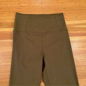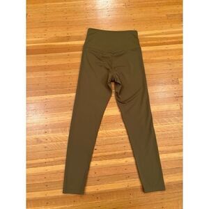 Girlfriend Collective green high rise leggings. 90% recycled polyester, 10% polyester. Back waistband pocket. Waist across front 11 1/2 inches. Rise 10 1/2 inches. Inseam 24 inches. Size small. Excellent condition!