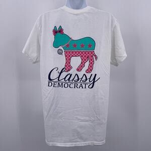 Girlie Girl Sz M Classy Democrat T Shirt White Crewneck Short Sleeve 100% Cotton