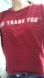 Short sleeve Red T-Shirt, white “NO THANK YOU” writing, white stripes on sleeves, girls 10-12