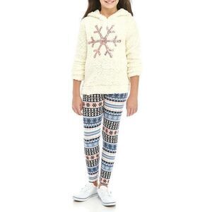 Girls 14 16 2 Piece Outfit Set Sherpa Hoodie Sweatshirt and Leggings Snowflake
