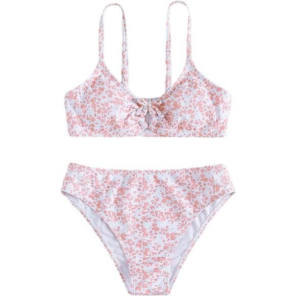Girls' 2 Piece Ditsy Floral Print Knot Front Ruched Triangle Bikini Swimsuit