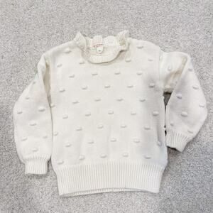 - Cream J Crew Crewcuts Polka Dot Textured Sweater with Ruffle Collar