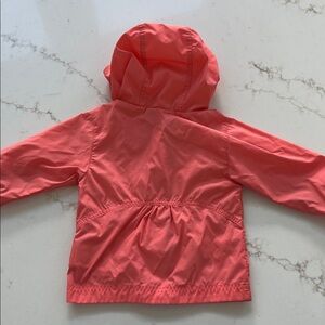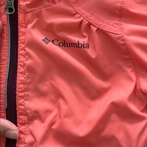 Coral jacket with hood by Columbia. Features front zipper and long sleeves.