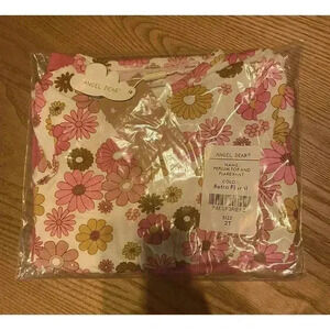 Twirl pocket dress by Angel Dear in Retro Floral print. Coordinating ribbed flared pants have lettuce edge hem and pocket detail.
