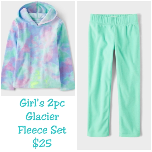 Girls Print Glacier Fleece Tie Dye Hoodie with matching Girls Glacier Fleece Sweatpants in green both size.(16).