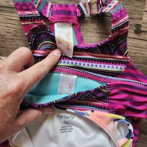 Girl's 2t Vibrant Swim Suit Bundle, great pre worn condition, size 2t, various brands include cat & Jack and carter's, floral one piece, Aztec pattern two piece tankini
