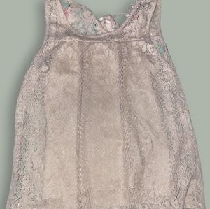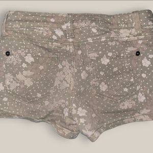 Crochet top with camisole and floral print jean shorts that have an adjustable waistband. Girls size 10/12. Good condition.