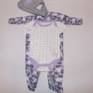 Girls 3 piece set Pajama/one piece and bib 0/3m