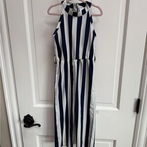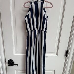 Girls 3-4T Blue & White Pinstripe Tank Top Jumpsuit