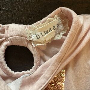 Unicorn - pink and white sequin design with cap sleeves and sheers to flare. Very cute sparkle accents throughout the bottom dress. Super comfy lining