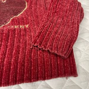 DKNY sweater is size UNKNOWN but I have provided measurements in photos above .