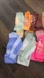 Legging sets, black sweat pants, and pink sweat set have light wear on fabric.