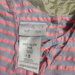 Iris& Ivy 5T Pink Grey Striped Elastik Back Waist Buttons Girl's Summerdress