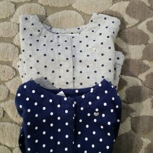 Adorable grey top with navy blue polka dots & navy blue top with white polka dots. Long sleeved. Gently used condition!