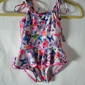 Girls 4T Swimsuit Pink Butterfly Floral Peplum One Piece Bathing Suit Cute