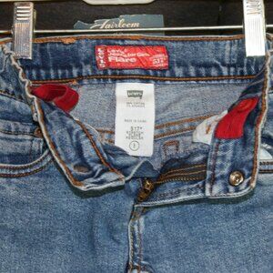 This is a pair of girl's Levi's. They are 517 and have flaired legs. There is Spandex in it so there is some stretch. They are marked as size 5 and are about 10 1/2 inches wide flat at the waist and 18 inches at the inseam. There is some wear especially to the knees but are in nice shape.