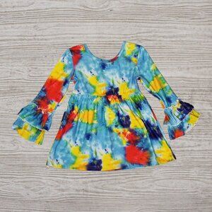 Girls 6 Tie Dye Bell Sleeve Tunic Pink Cut Out Leggings Outfit Set