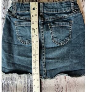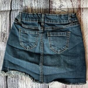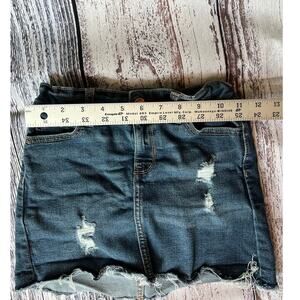Featuring a trendy distressed design and a fun frayed hem, this blue skirt is sure to be a hit.