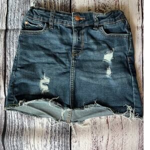 Girls 6-6X Disterssed Denim Jean Skirt, Frayed Hem, Blue, Wonder Nation