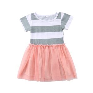 Girls 6T Dress, Gray Stripes/Peach Tulle