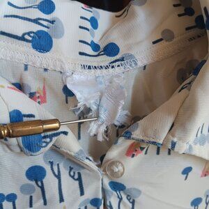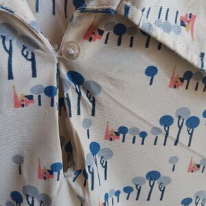Designed with a nostalgic tree and house print, this vintage shirt showcases the charm of the 1970s. With its button closure and long sleeves, it exudes timeless style. Ideal for collectors of vintage children’s wear or as a unique piece for a retro-inspired wardrobe.