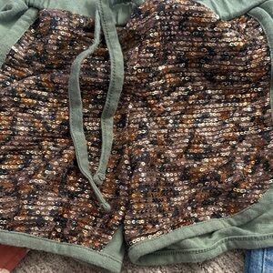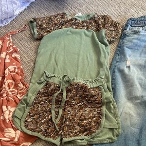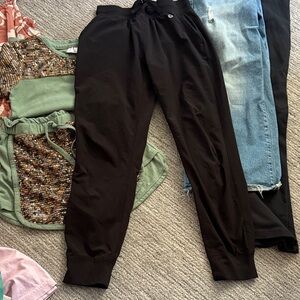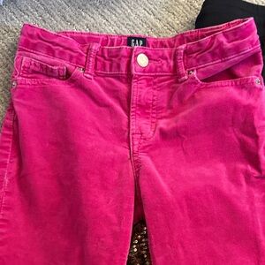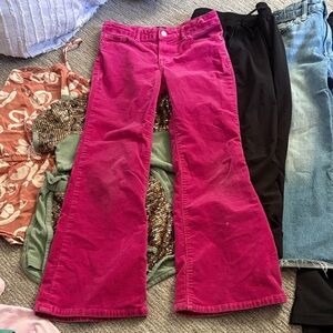 girls 8/10 bundle one pair of black boots, two pairs, jeans, pants, and a pair of black wind pants. Matching top shirt, Carter’s romper, and aéropostale shorts . 7 items