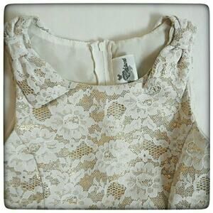 Girls A-Line Cream and Gold Lace Party Dress with Bows Size 5 RARE EDITIONS Kids