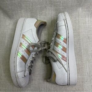 Girls Adidas Superstar Tennis Shoes White W/Iridescent Accents Size 1.5