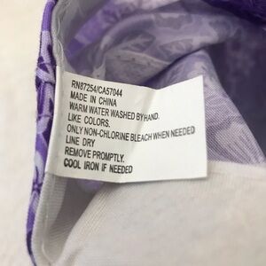 J8 Hat/Cap Mfg in China Size not marked; Should fit Girl or Women XS-S Adjustable Hook & Loop Strap Designer Purple Floral Design Very light material. Hand Wash only. See pic for care instructions