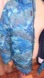 This 3 in 1 system can be worn together as one or each jacket can be worn separately. Pockets and zippers are on both jackets. Inside blue jacket has been repaired along the right sleeve near wrist opening (see photo). Fun blue and green multicolored watercolor print for outer jacket and inside is plain navy blue. Great for winter and outside activities!