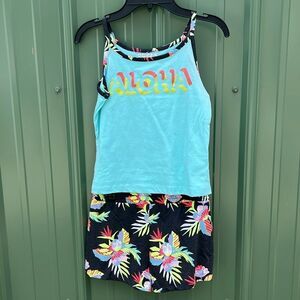 Girls Aloha Dress Shorts & Tank Top Set Size L 10/12